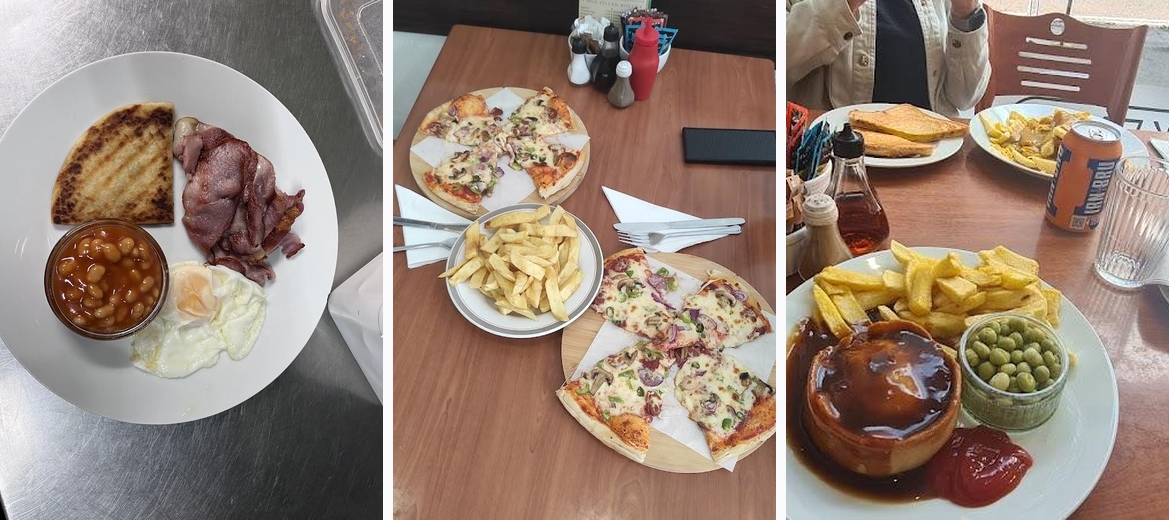 The Oxford specializes in fish and chips, offering a variety of options including classic battered fish, haggis, and a diverse breakfast menu.